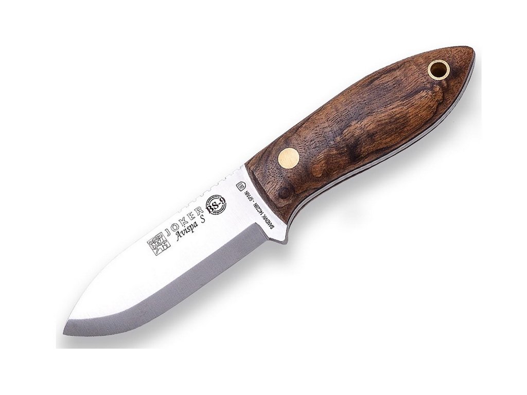 Joker knives are made in the Spanish city of Albacete, the center of the famous knife region. The company was founded in 1987 and uses modern production technologies in the production of knives. Joker uses quality knife steels such as Sandvik (12C27, 14C28N) or Böhler (N695, K720). Joker knife handles are made mainly from wood, stag or micarta. Top quality leather sheaths with durable sewing. Joker bushcraft knives and hunting knives are excellent tools with high durability, maximum functionality and a nice design.